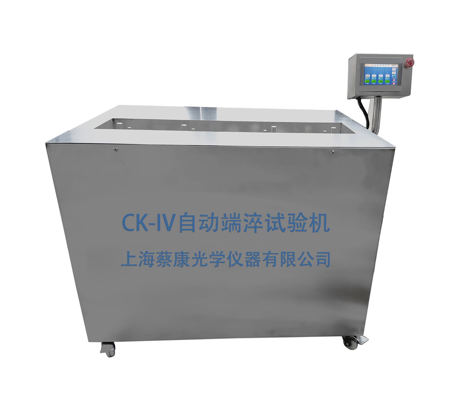 3、CK-IV系列端淬試驗機由機架、保溫水箱、水泵自動循環水系統、噴水時間設定系統、光電傳感器自動快速開啟裝置、水溫調節控制系統等部分組成。